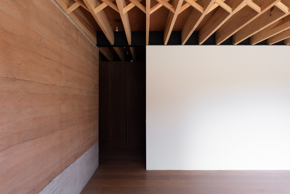 A ala dos quartos foi construída inteiramente em taipa e fica 70 cm abaixo do exterior, proporcionando vistas do jardim e da piscina de cada quarto. As paredes são compostas por um ritmo lateral de colunas de taipa de um lado e paredes e portas de madeira do outro, dividindo os volumes que albergam as casas de banho e vestiários.