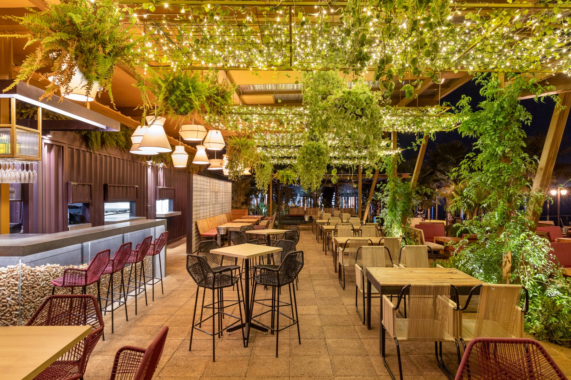Bar Wine Garden Da Redação | 07/10/2021 A natureza integra-se com o ambiente nesse espaço com forte apelo paisagístico.
